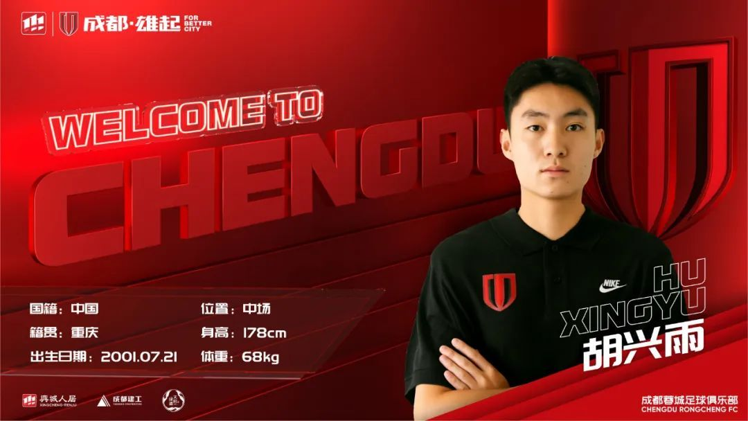 官方:原重庆两江竞技U23球员胡兴雨加盟成都蓉城