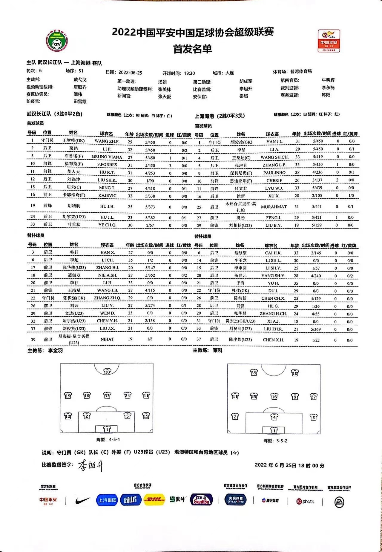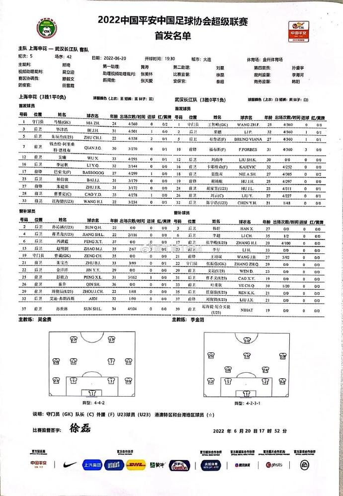 申花vs长江首发:巴索戈、曹赟定出战,福布斯、布鲁诺先发