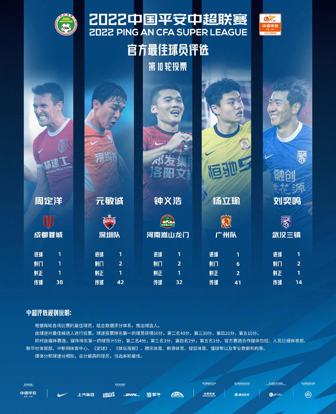 第10轮MVP候选:周定洋、元敏诚、钟义浩、杨立瑜、刘奕鸣