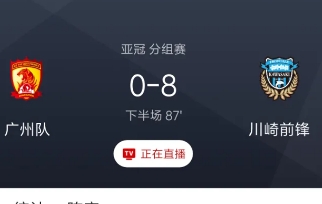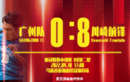 广州0-8川崎遭亚冠八连败,刷新中超球队亚冠丢球纪录