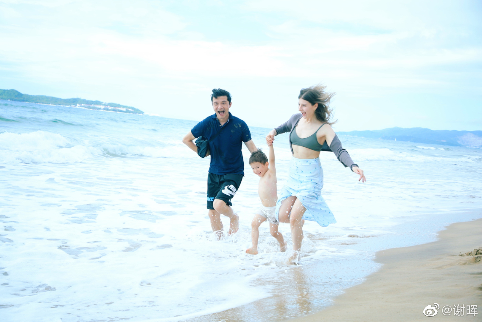 谢晖带妻儿海边出游:⾯朝⼤海,春暖花开