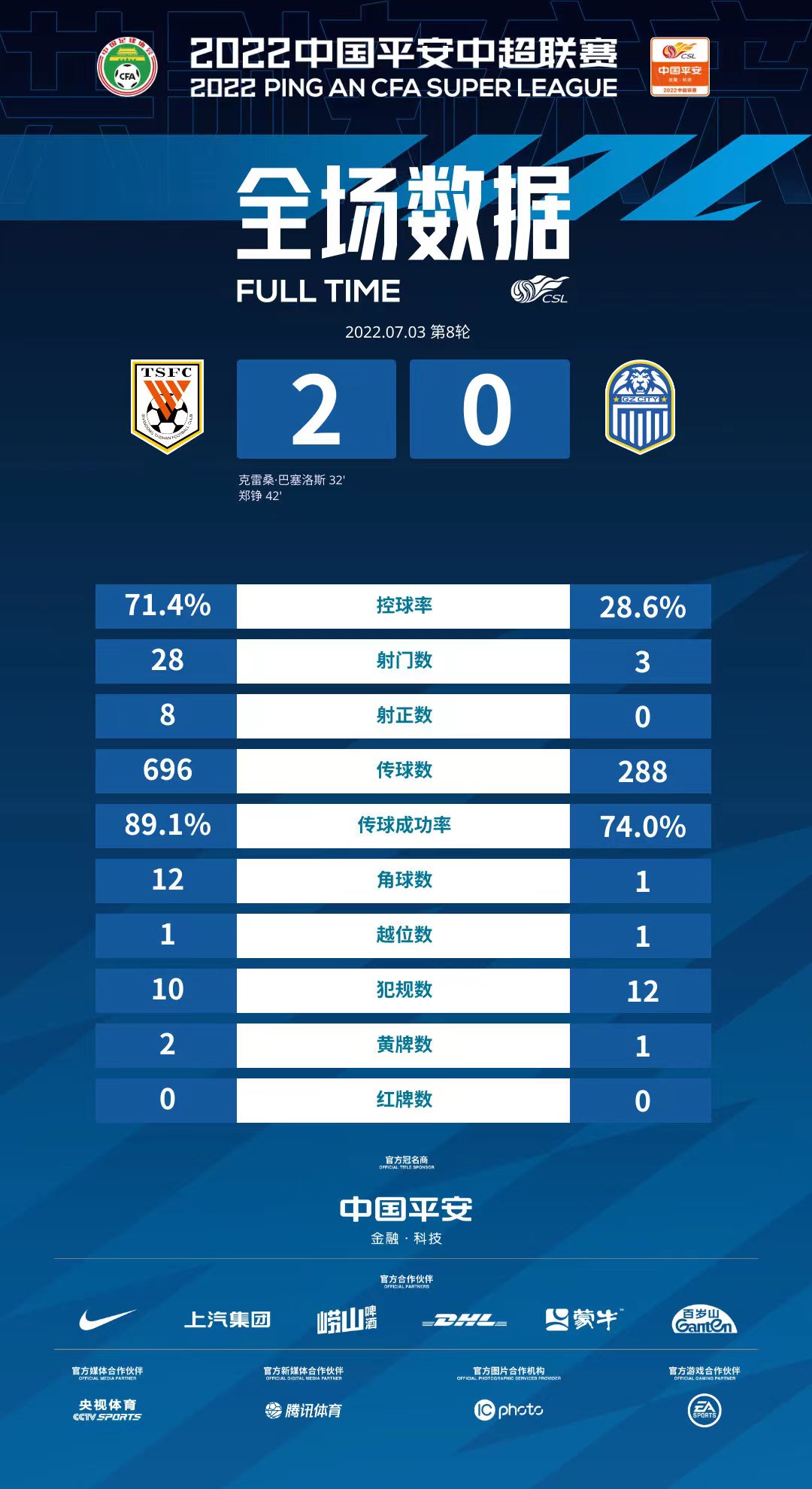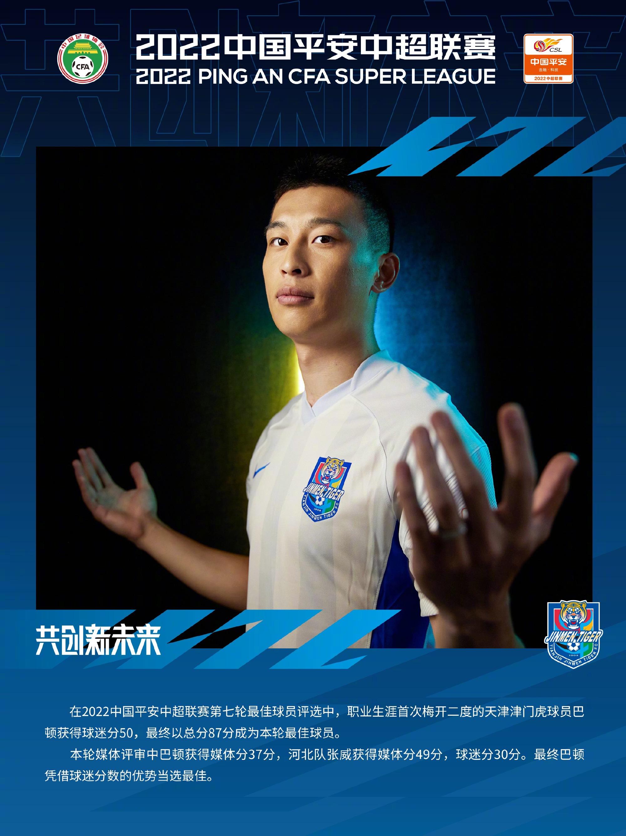独中两元助津门虎逆转深圳队,巴顿当选第7轮最佳球员