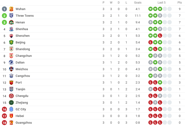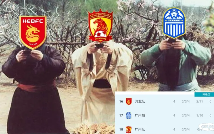 四轮过后,河北、广州城、广州队三兄弟组成“中超毛抬厂”