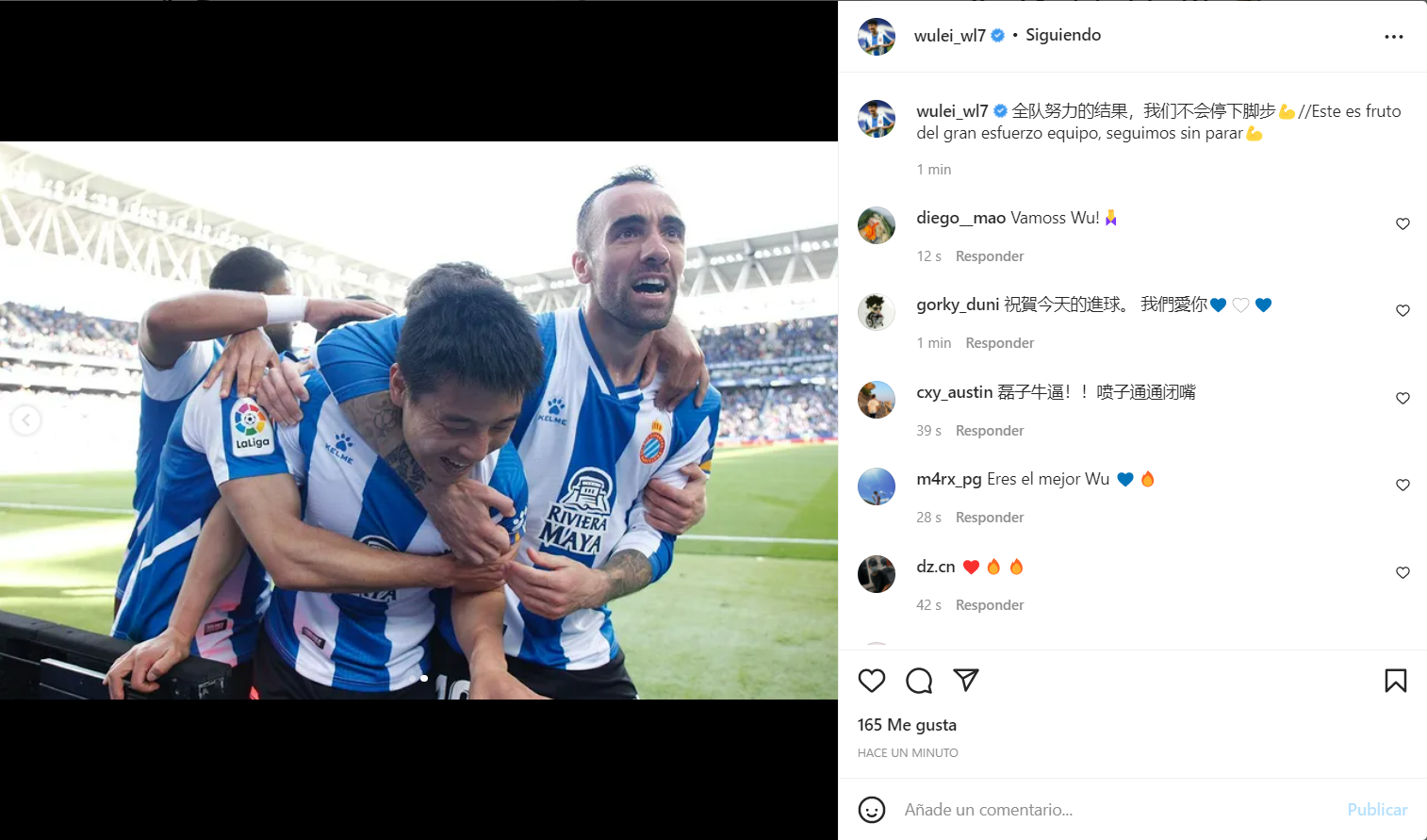 中国球迷在西班牙人官推下留言:武磊牛批,多给点出场时间