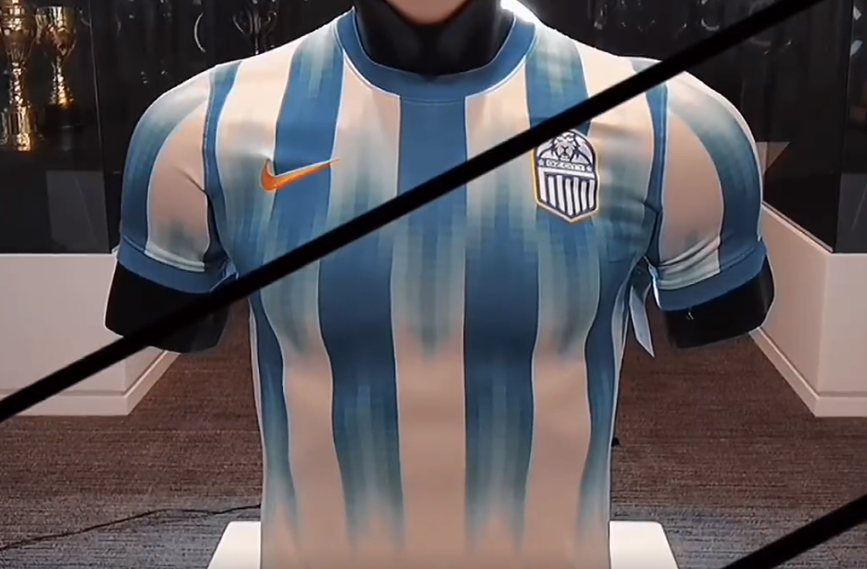 广州城新赛季球衣发布:呈蓝白渐变条纹,新队徽亮眼