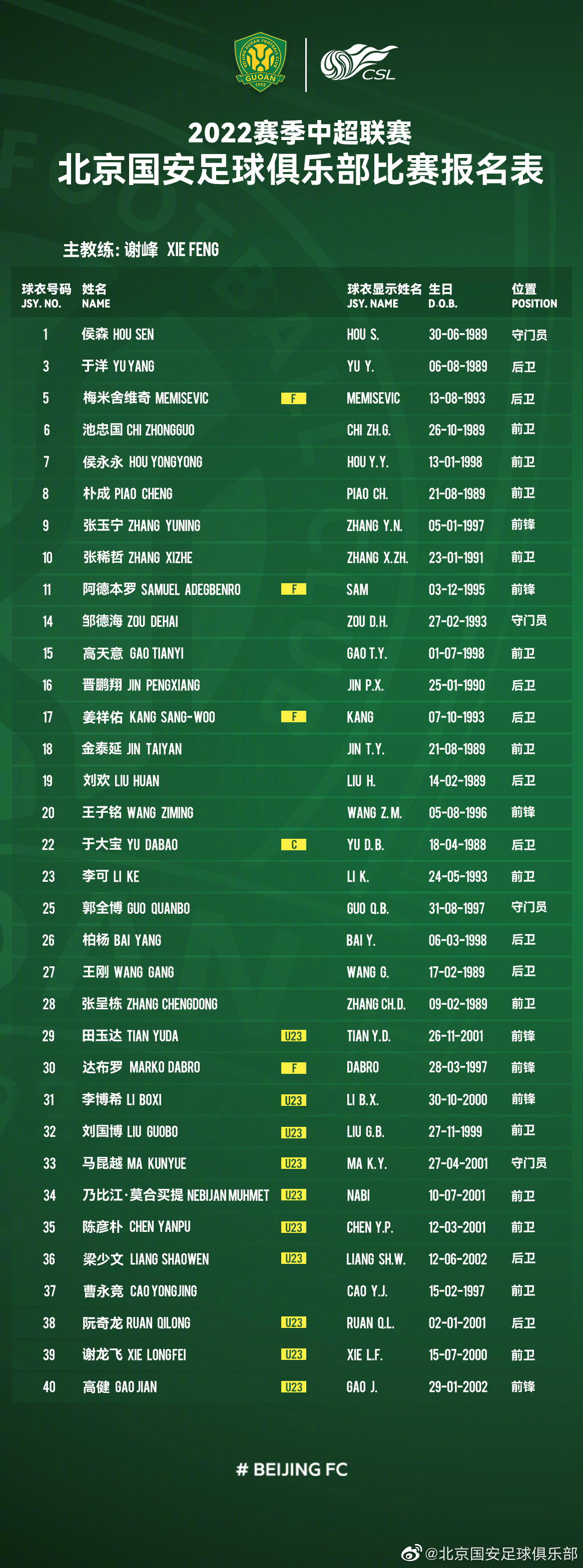 国安公布新赛季大名单:张玉宁、于大宝领衔,四外援在列