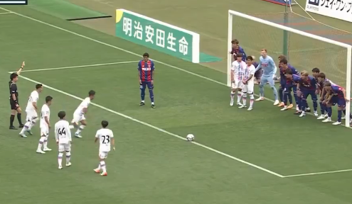 日职联门将手接回传球被判禁区内任意球,对手花式罚球不进