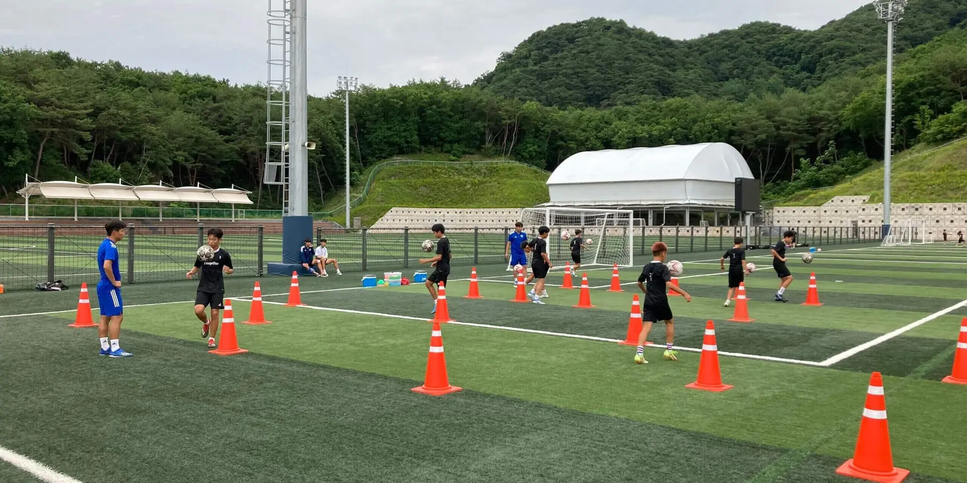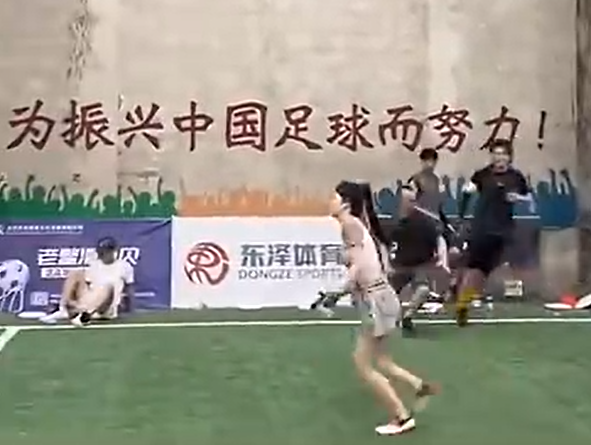 现实好魔幻!飞盘场的墙上写着为振兴中国足球而努力的标语