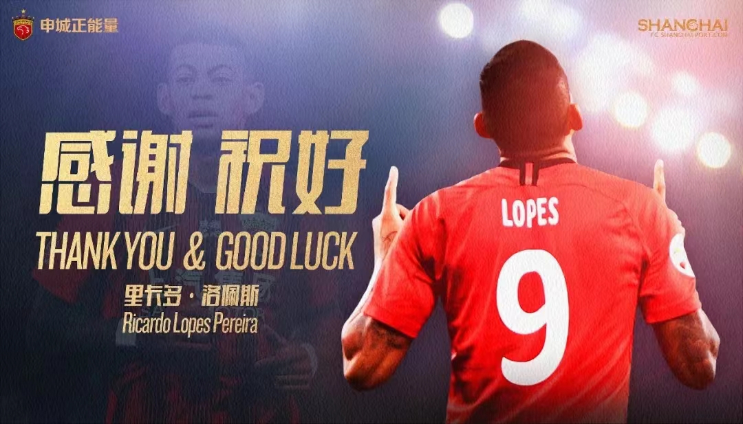 上海海港官方社媒发海报告别洛佩斯:感谢,祝好!