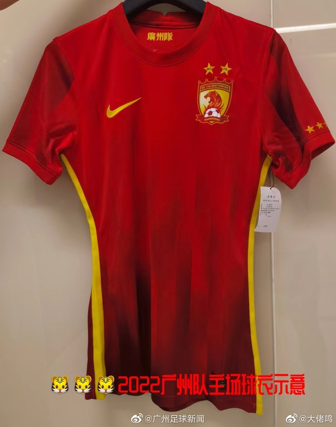 广州队新赛季主场球衣曝光,设计较往年略显简单