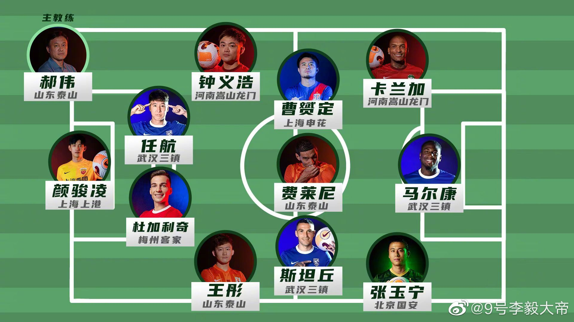 李毅评选中超首阶段最佳阵容:张玉宁、费莱尼&斯坦丘在列