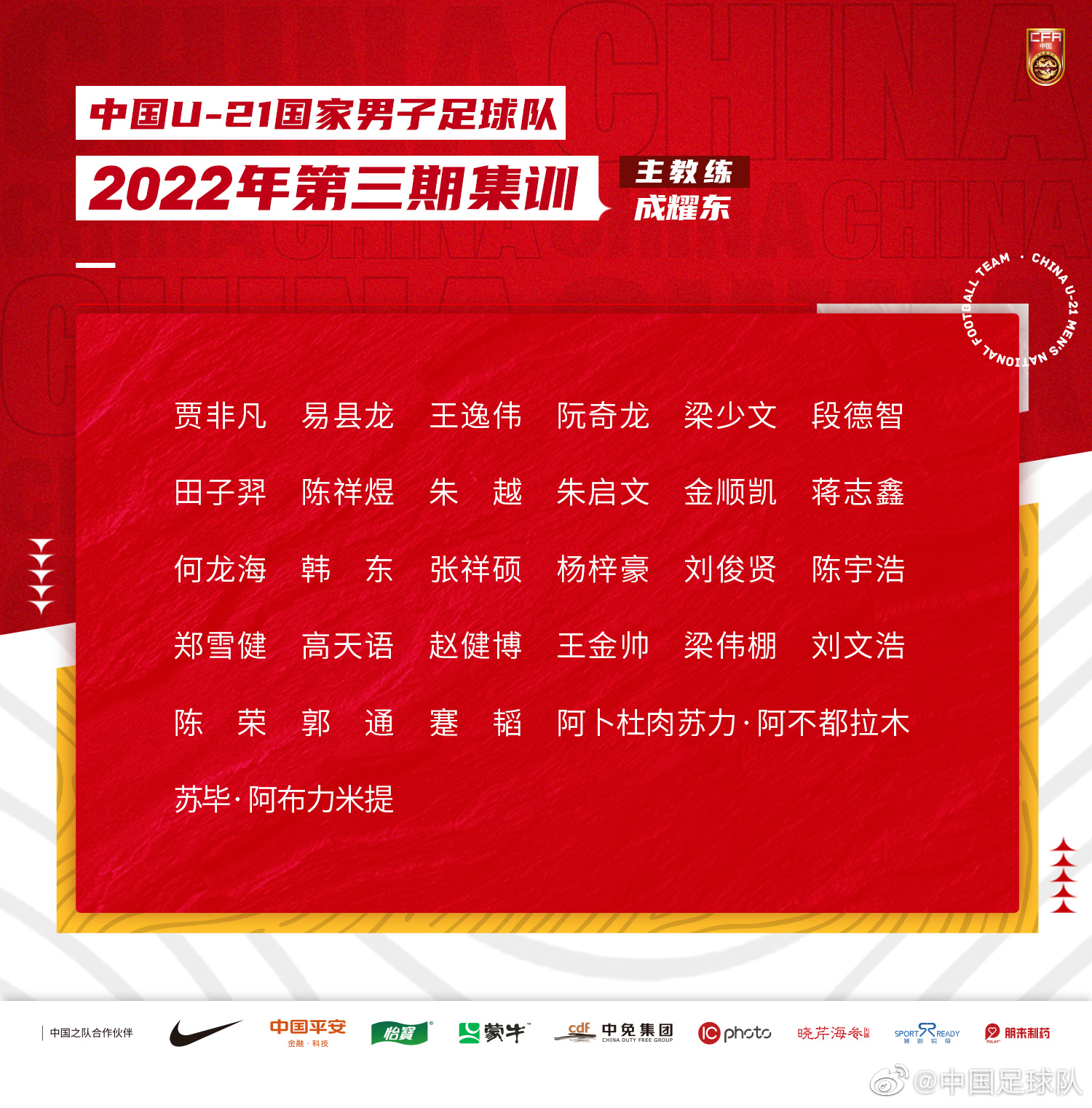 U21国青克罗地亚拉练名单:梁少文、易县龙等29名球员入选