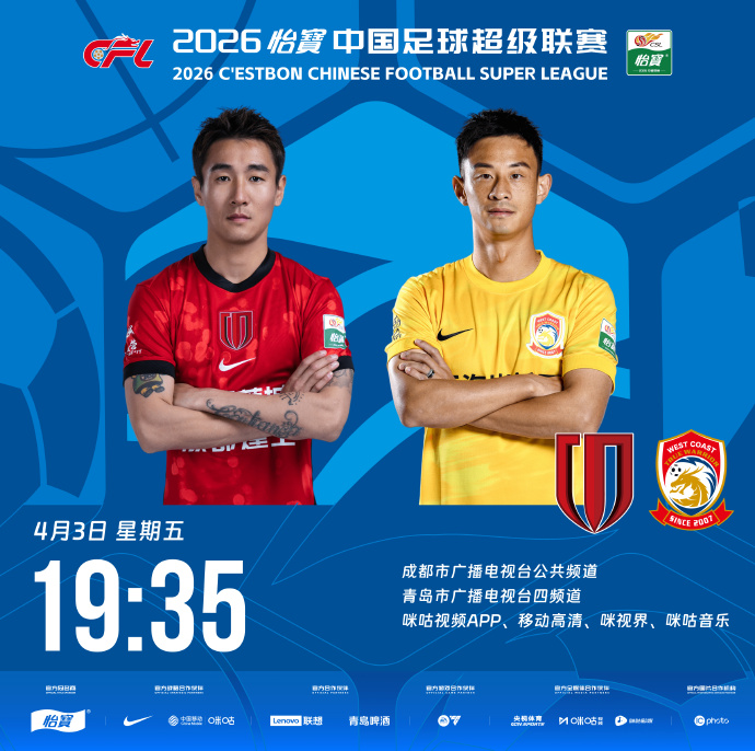 蓉城vs西海岸首发:胡荷韬出战费利佩入替,茹萨、李昊缺阵