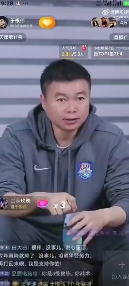 于根伟直播怼连线球迷:蹭流量!我对得起天津足球