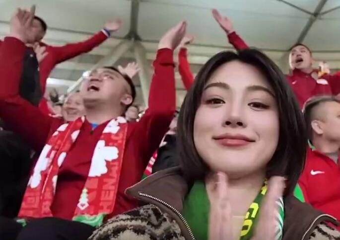 流量这么好玩?演员余薇薇身披国安围巾坐在河南球迷看台