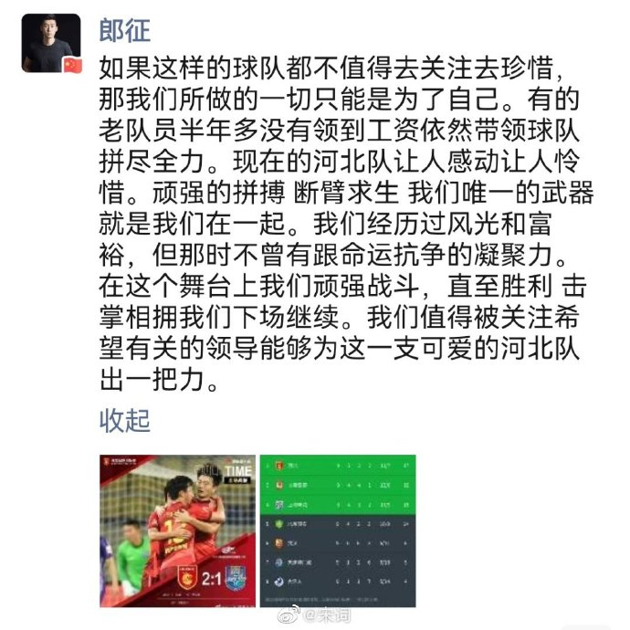 记者:河北队领队郎征朋友圈呼吁有关部门为河北队出一把力