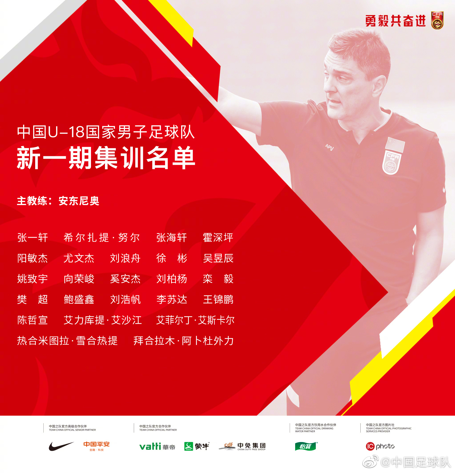 U18男足佛山集训名单:艾菲尔丁入选,广州队7人