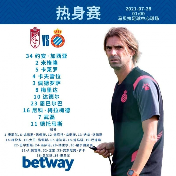 西班牙人vs格拉纳达热身赛首发:武磊、德托马斯先发
