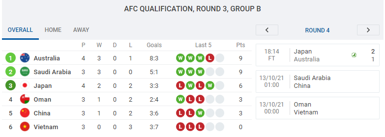 实时积分榜:澳大利亚输球仍领跑,日本多赛一场落后沙特3分