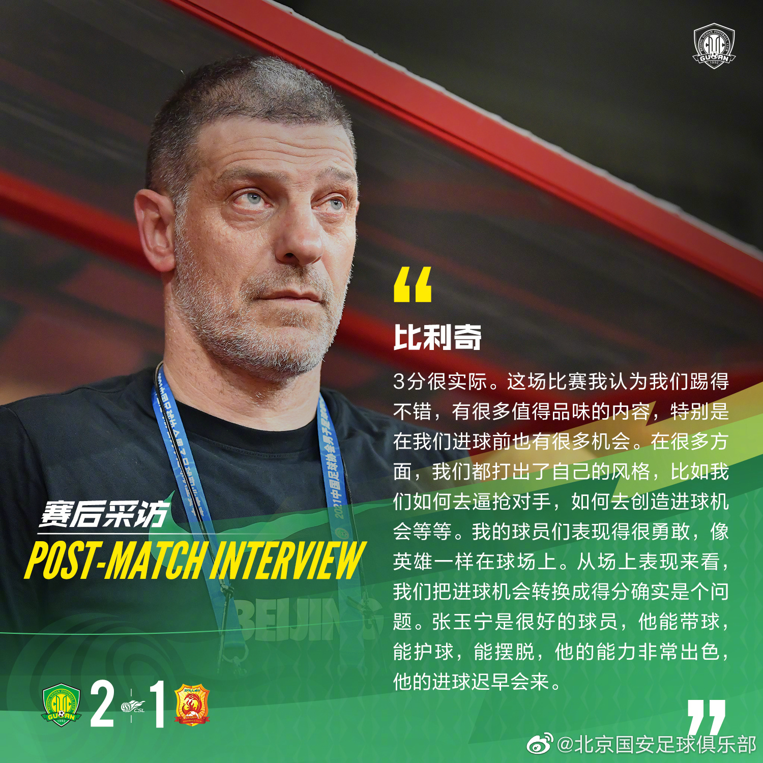比利奇:国安球员像英雄一样;巴坎布是不同等级球员