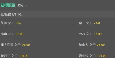 奥运足球金牌赔率:中国女足位列第九,美国居首