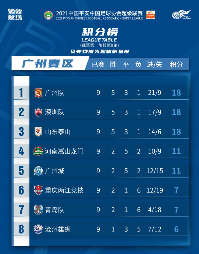 广州赛区积分榜:广州深圳山东齐头并进,沧州雄狮一胜垫底