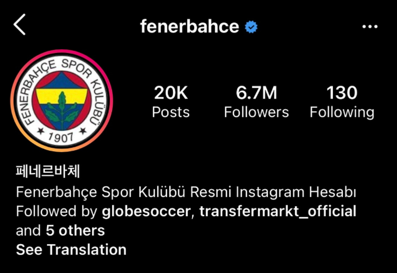 排面!为庆祝金玟哉加盟,费内巴切将官方社媒名称改为韩语