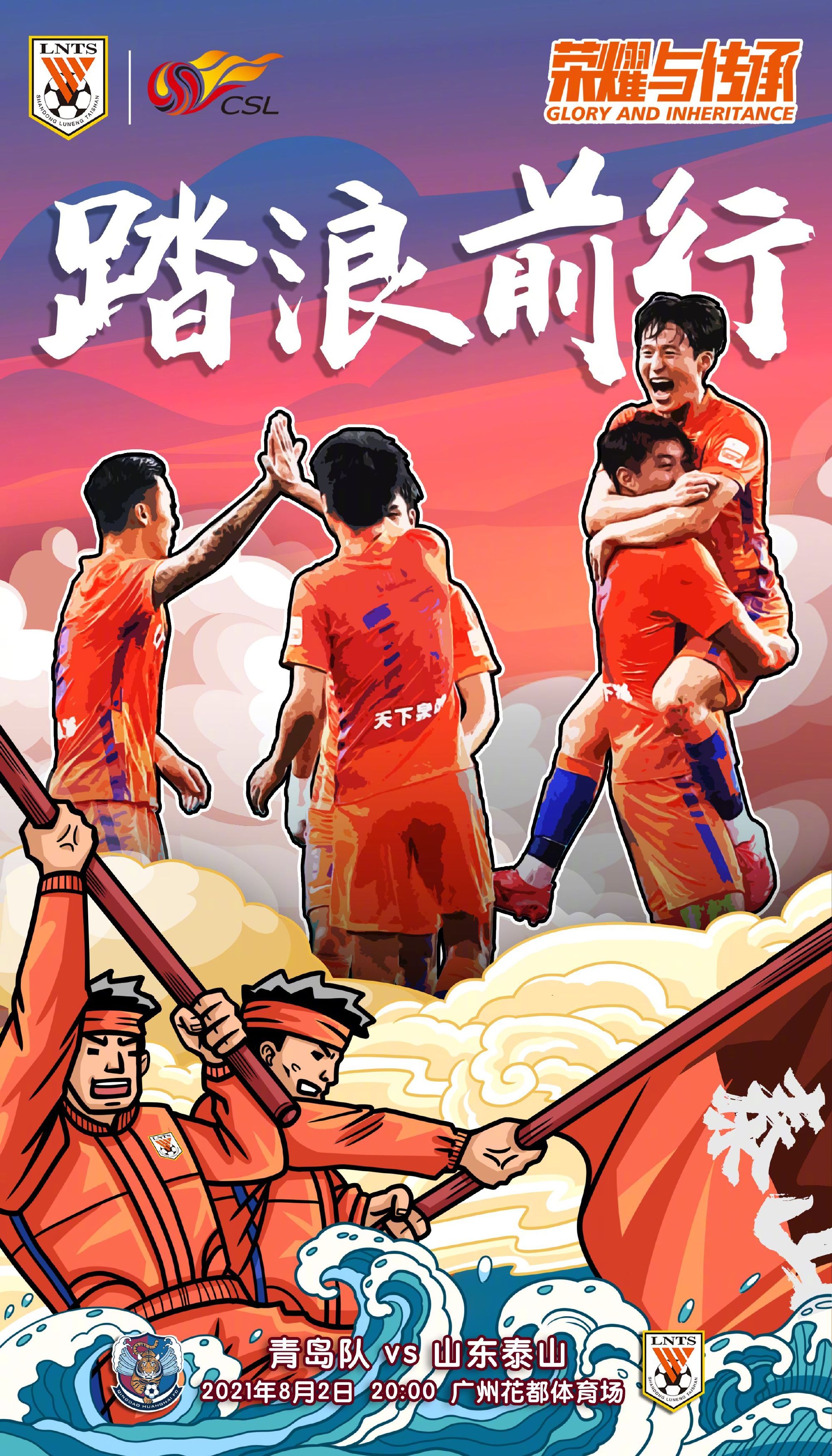山东泰山发布对阵青岛队赛前海报:踏浪前行