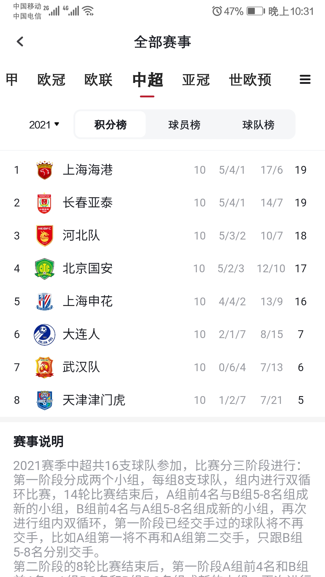 中超第10轮苏州赛区积分榜:海港不败领跑,武汉难求一胜