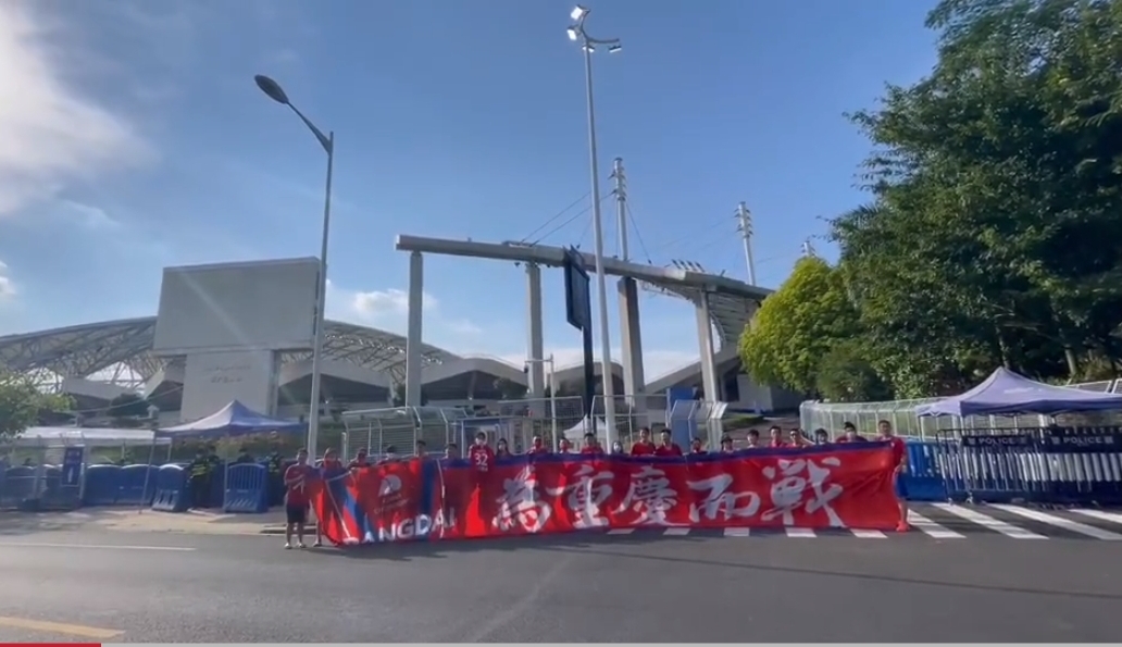 为重庆而战,球迷抵达比赛现场为球队加油助威