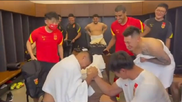 [视频]国足集训日常休闲活动之一,郭田雨和蒋光太掰手腕