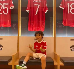 📽父爱满满!奥斯卡陪儿子练球,并在C罗球衣面前合影