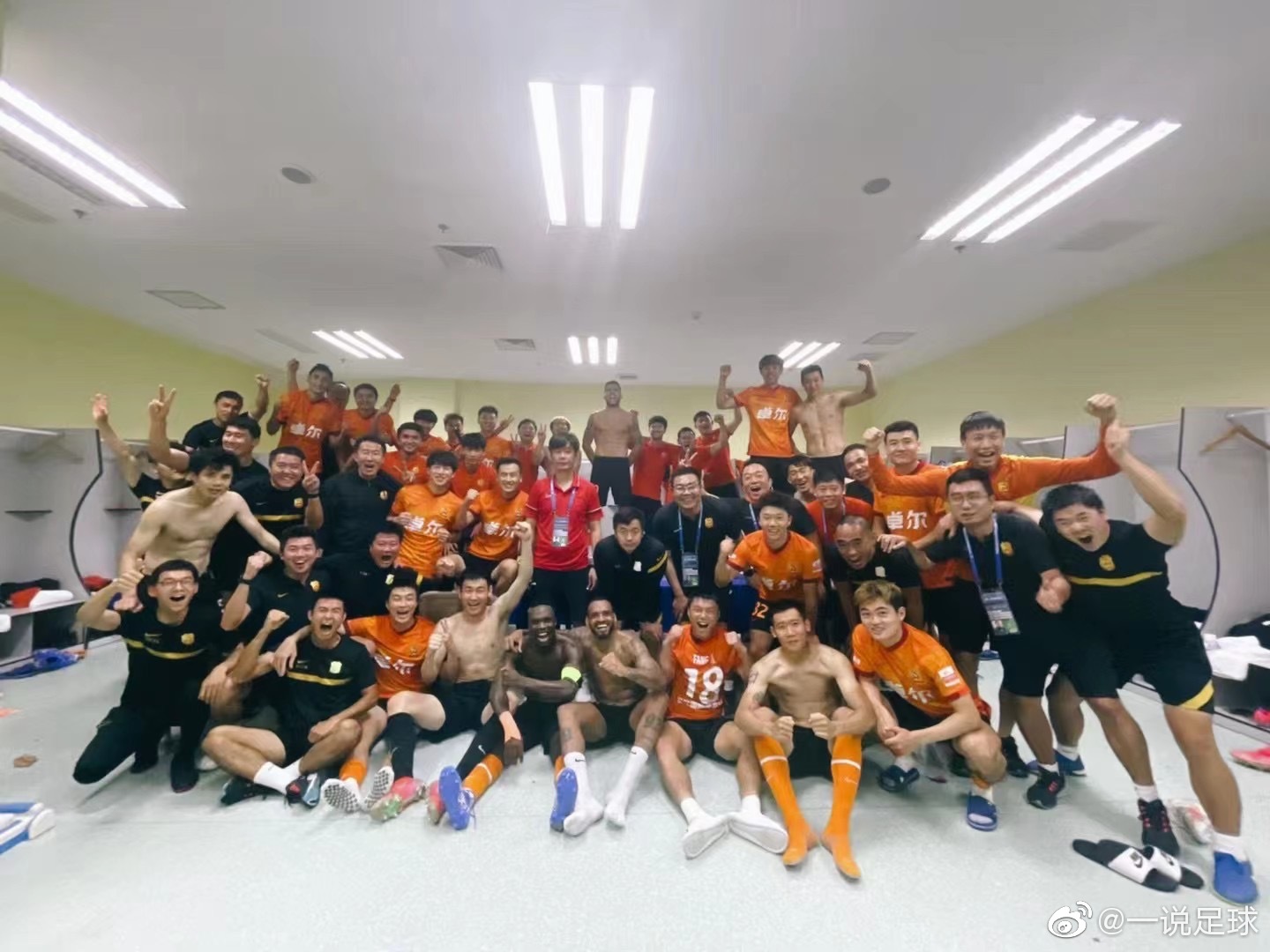 努力终得首胜,武汉队赛后发布更衣室全队庆祝照