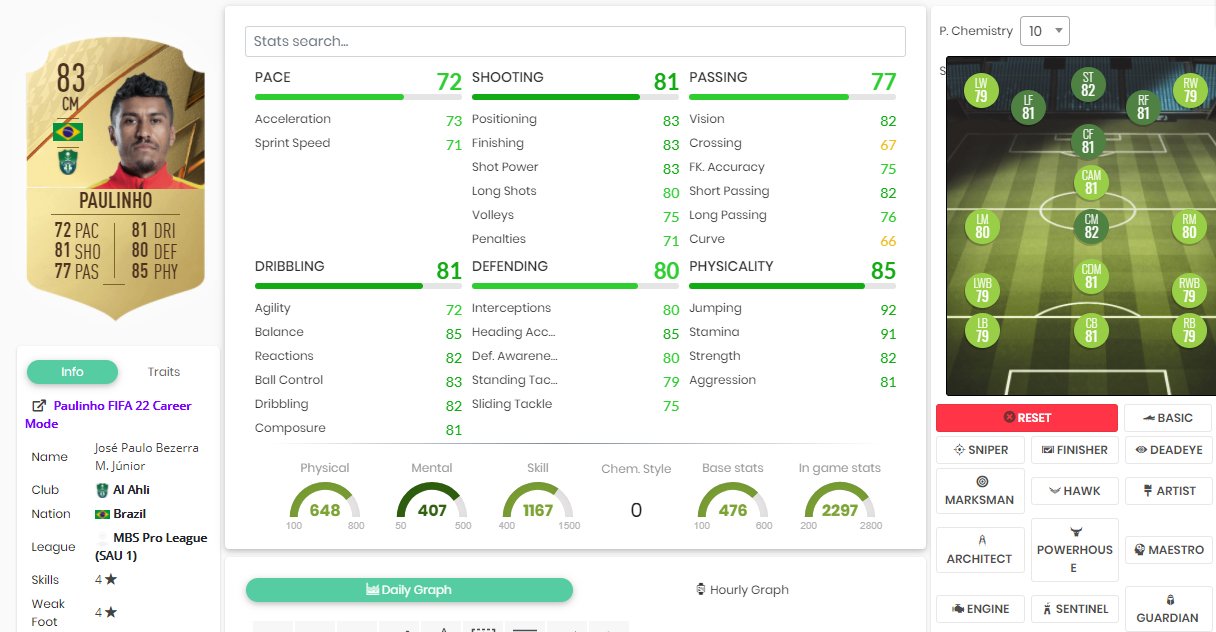 FIFA22保利尼奥能力值83,能打中场和中锋