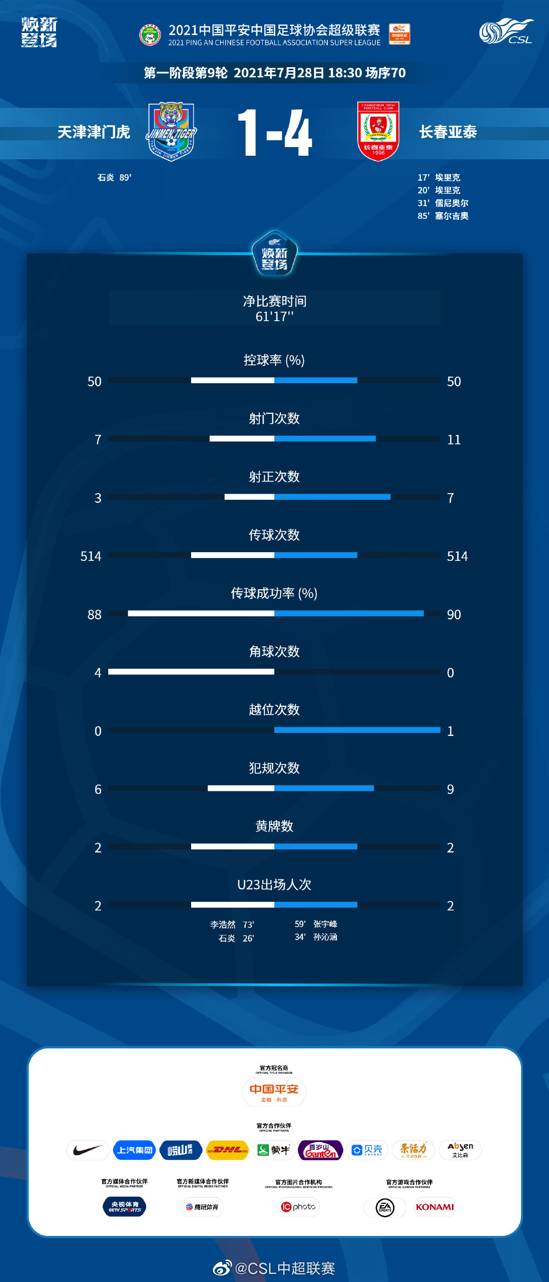 双方多项数据平分秋色,长春亚泰得分效率比津门虎更胜一筹