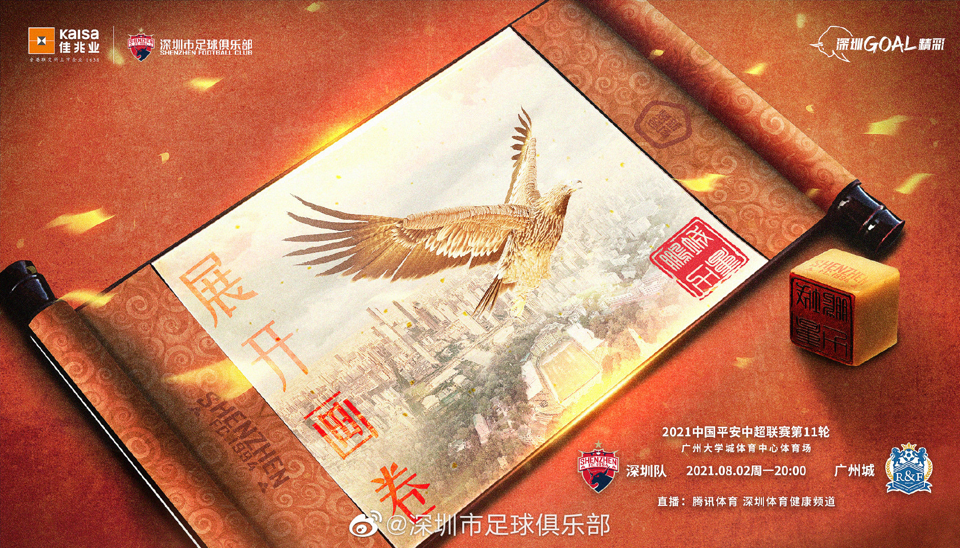 展开画卷,深圳队发布中超对阵广州城赛前海报