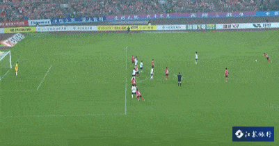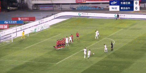 林创益任意球直接打门,皮球应声入网,海牛1-0