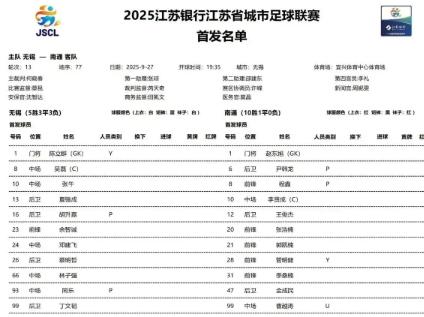 无锡vs南通首发阵容公布:李贤成领衔,南通五前锋出战
