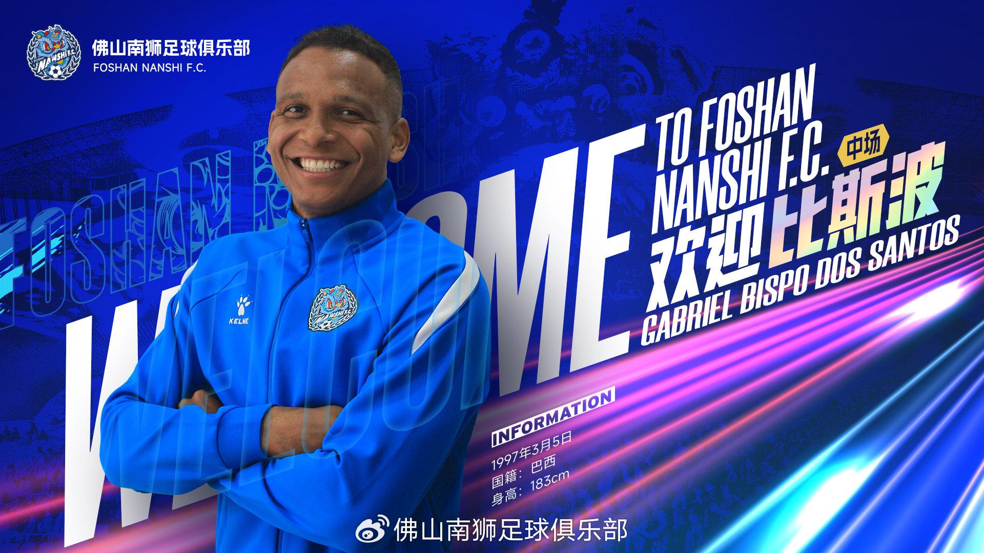 官方:巴西中场加布里埃尔-比斯波正式加盟佛山南狮