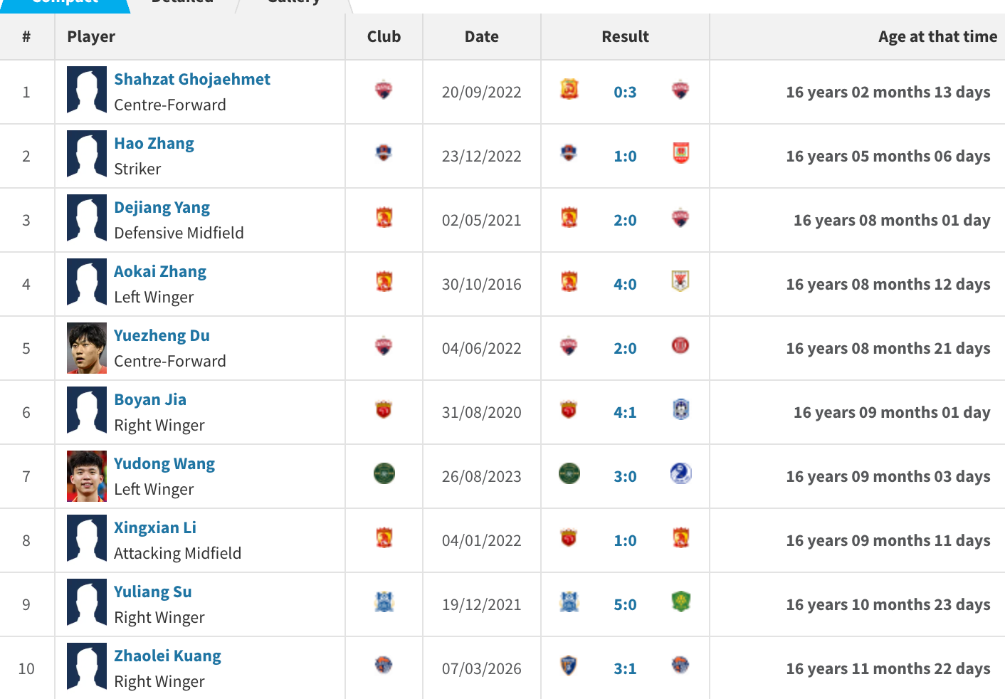 中超历史最年轻首秀:夏合扎提第1,王钰栋第7,邝兆镭第10