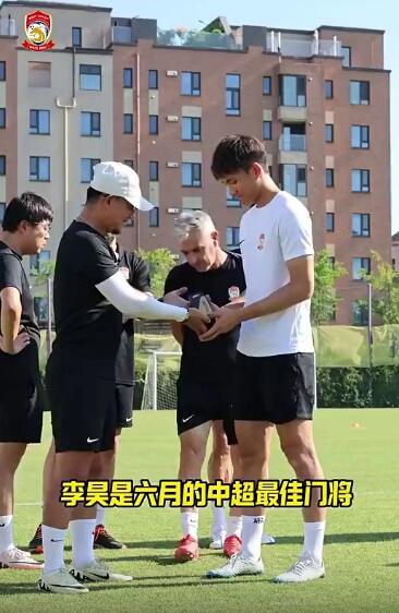 有能!李昊曾在邵佳一的见证下领取中超月度最佳门将奖杯