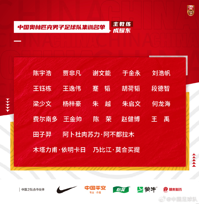 国奥男足集训名单:谢文能、王钰栋、乃比江、胡荷韬在列
