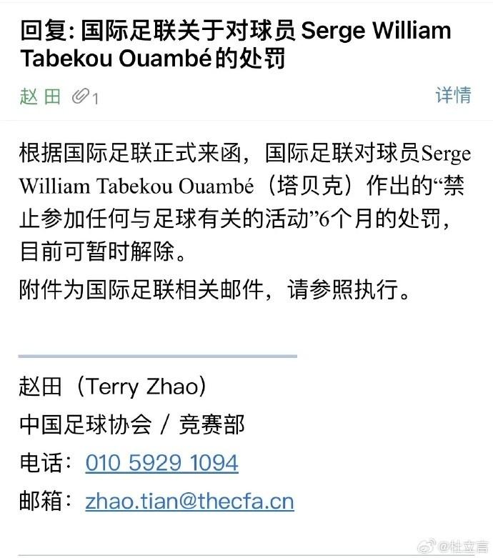 媒体人:青岛海牛外援塔贝克的禁赛令已经暂时解除