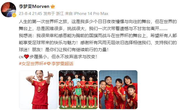 李梦雯社媒发文:在世界的舞台上,总是困难很多,挑战很大