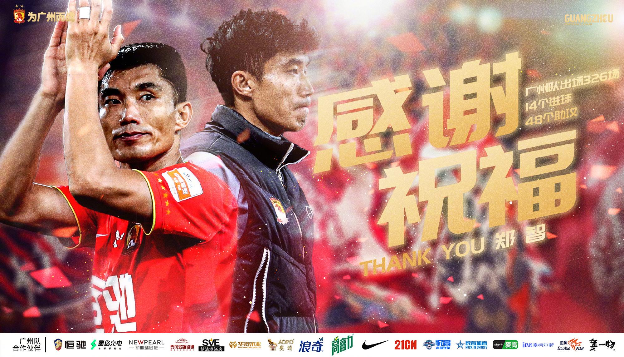 广州队为郑智发布退役海报:感谢队长13年326场比赛的坚守