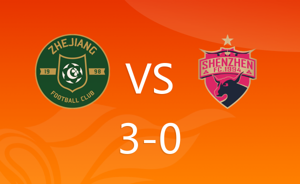 中超:浙江3-0深圳,穆谢奎姚均晟传射,埃弗拉点球破门