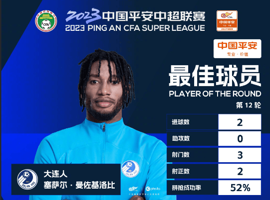 官方:大连人外援曼佐基当选中超联赛第12轮最佳球员