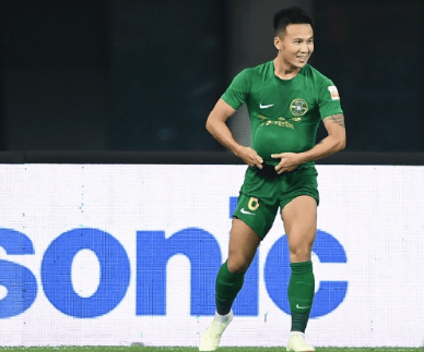长春亚泰前锋莱昂纳多社媒晒照庆祝进球,并配文:继续