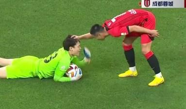场面着实有趣!武磊摸头成都蓉城门将,后者一番戏剧性表演
