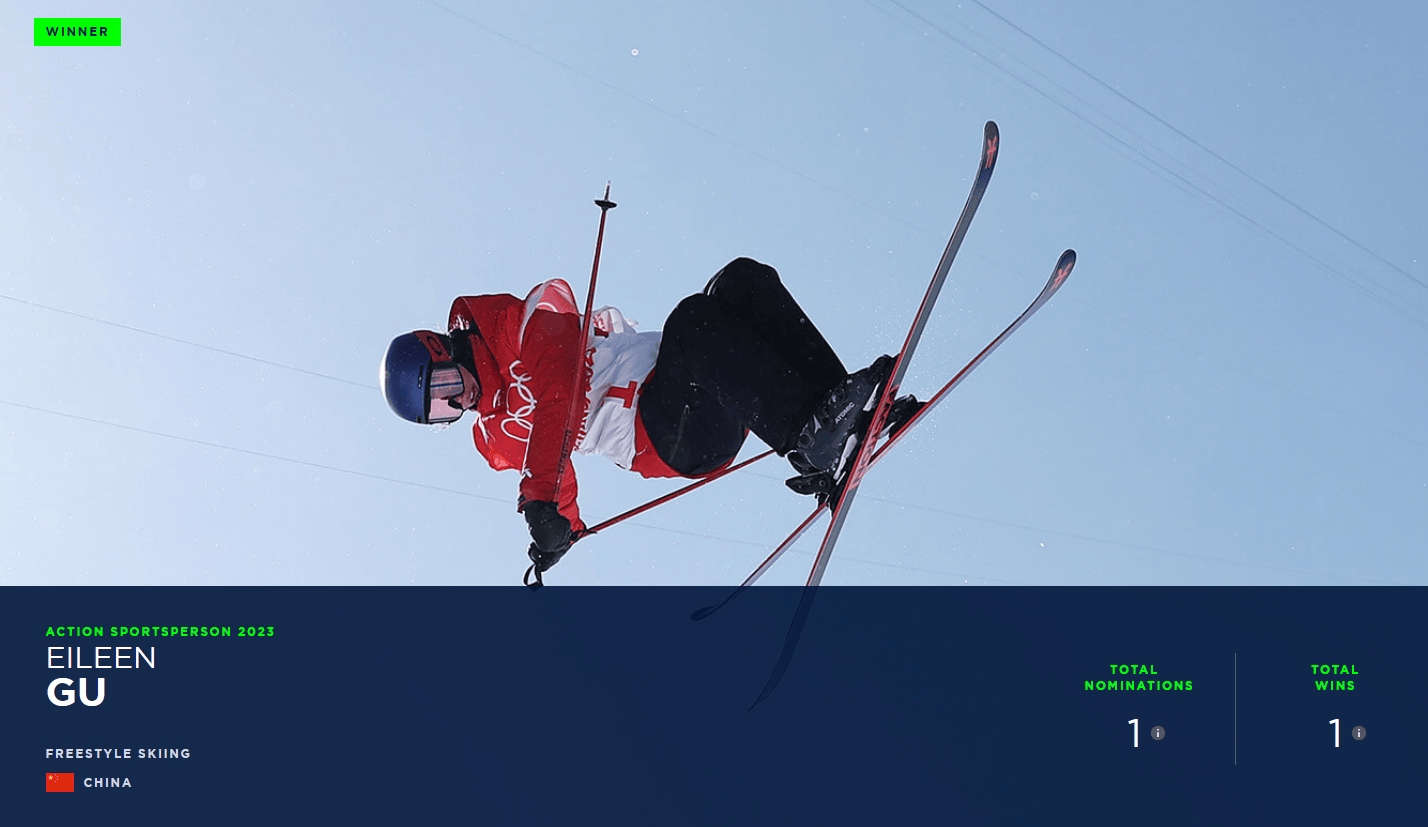 官方:谷爱凌获得2023劳伦斯最佳极限运动员奖